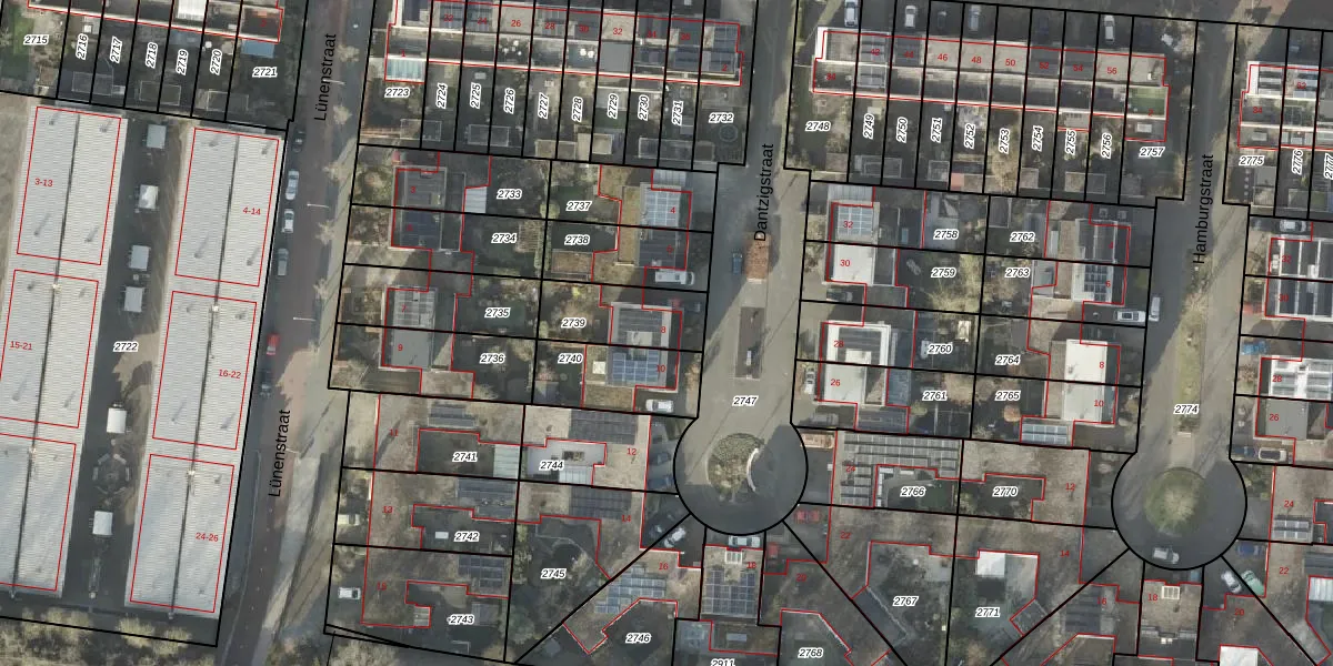 Gebruik de zoekbalk of klik op een perceel voor informatie over de adressen binnen dit perceel.