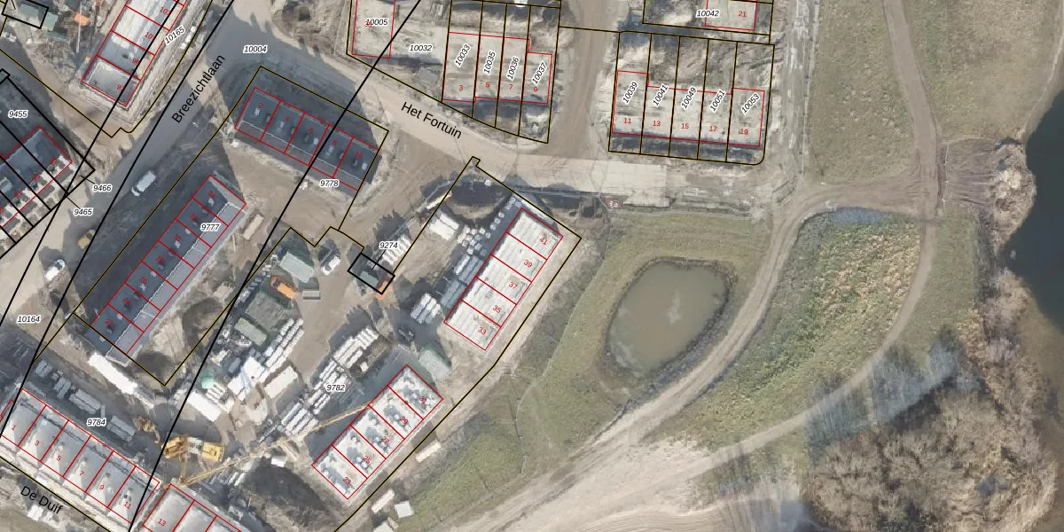 Het perceel waarop De Duif 39 staat heeft een oppervlakte van 3343 m². Dit is een zeer groot perceel. De perceeloppervlakte wordt geregistreerd door het Kadaster. Gedetailleerde informatie over de maten van dit perceel kunt u vinden in het rapport Kadastrale kaart met maatvoering van De Duif 39.