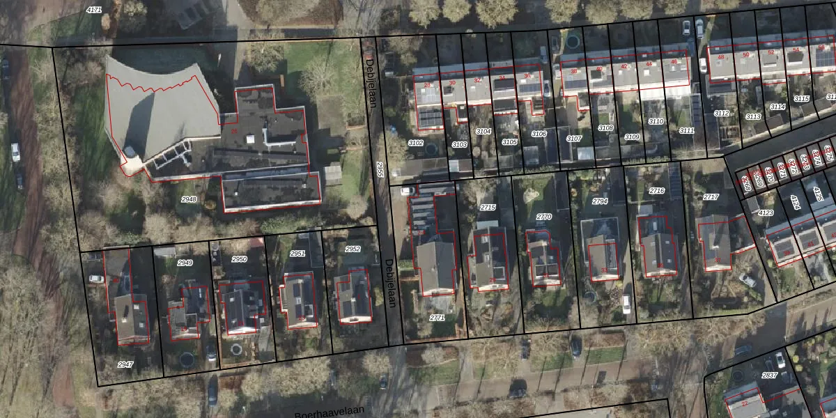 Het perceel waarop Debijelaan 4 staat heeft een oppervlakte van 590 m². Dit is een groot perceel. De perceeloppervlakte wordt geregistreerd door het Kadaster. Gedetailleerde informatie over de maten van dit perceel kunt u vinden in het rapport Kadastrale kaart met maatvoering van Debijelaan 4.