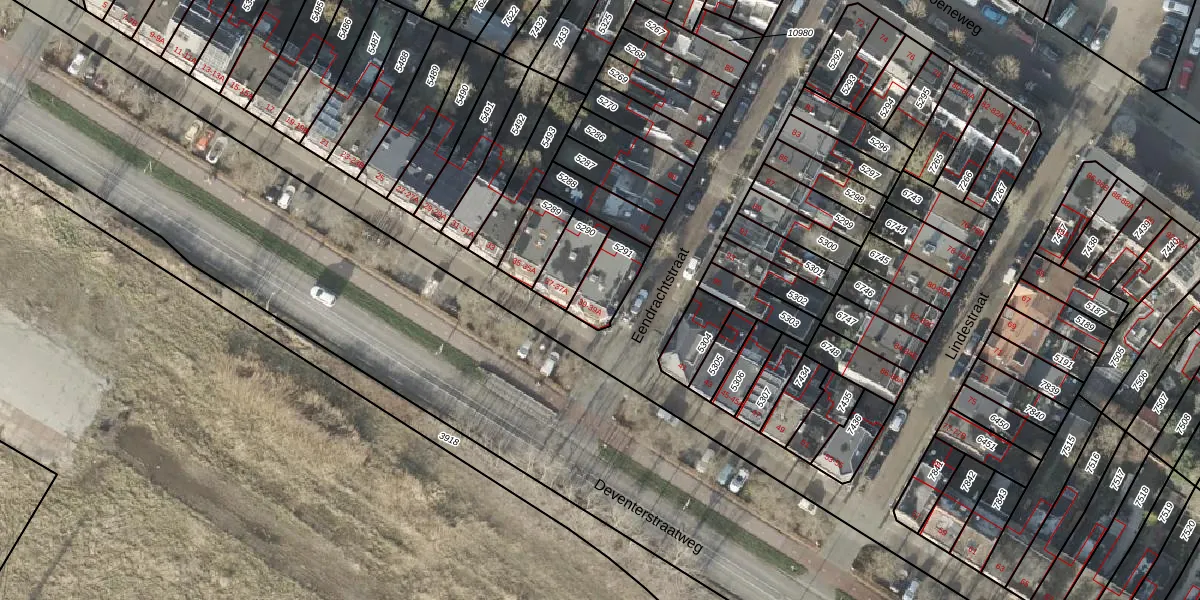 Het perceel waarop Deventerstraatweg 39 staat heeft een oppervlakte van 116 m². Dit is een middelgroot perceel. De perceeloppervlakte wordt geregistreerd door het Kadaster. Gedetailleerde informatie over de maten van dit perceel kunt u vinden in het rapport Kadastrale kaart met maatvoering van Deventerstraatweg 39.