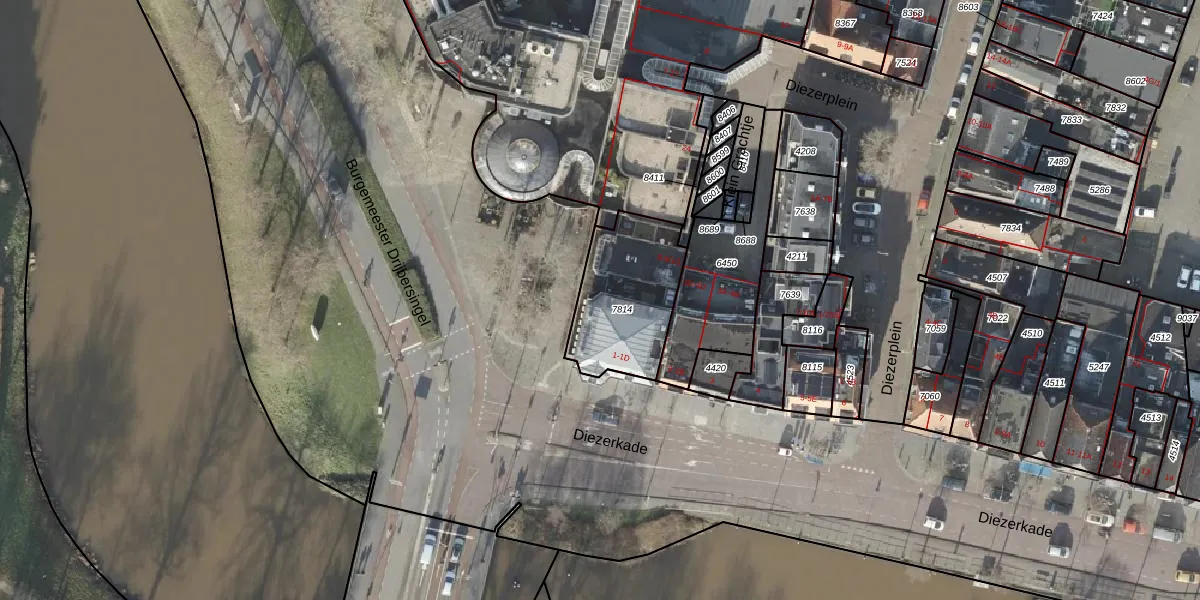 Diezerkade 1-C is gelegen op kadastraal perceel ZLE00A7814. Deze kadastrale aanduiding is uniek en wordt gebruikt door het Kadaster om eigendomsrechten en andere zakelijke rechten vast te leggen. Het perceel maakt onderdeel uit van de kadastrale gemeente Zwolle.