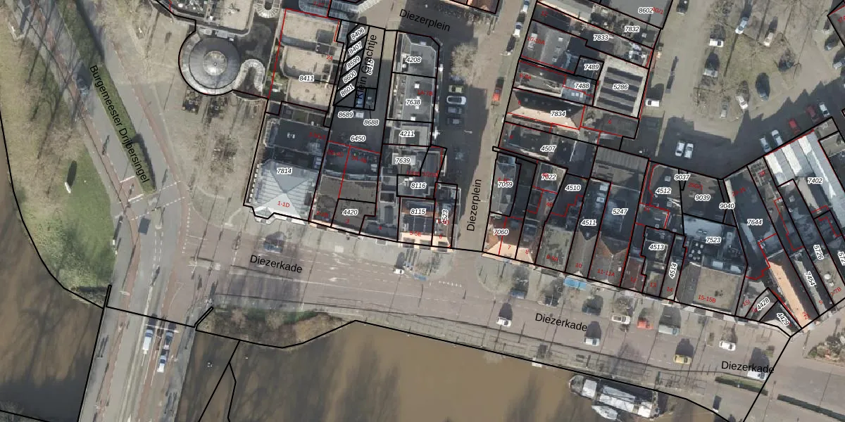 Het perceel waarop Diezerkade 5-E staat heeft een oppervlakte van 92 m². Dit is een klein perceel. De perceeloppervlakte wordt geregistreerd door het Kadaster. Gedetailleerde informatie over de maten van dit perceel kunt u vinden in het rapport Kadastrale kaart met maatvoering van Diezerkade 5-E.