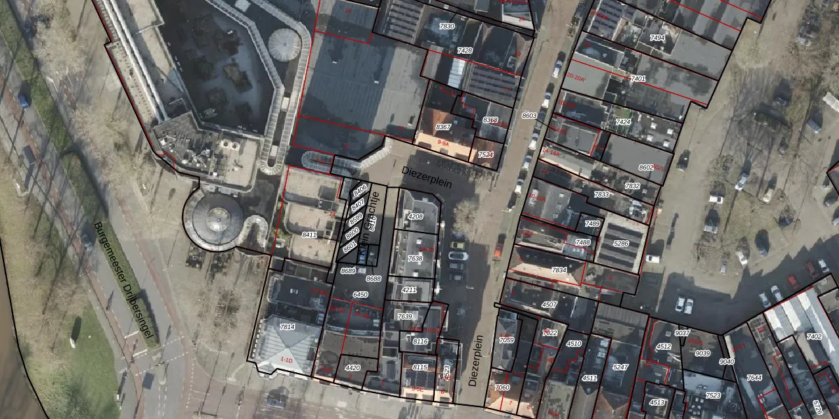 Het perceel waarop Diezerplein 7-B staat heeft een oppervlakte van 99 m². Dit is een klein perceel. De perceeloppervlakte wordt geregistreerd door het Kadaster. Gedetailleerde informatie over de maten van dit perceel kunt u vinden in het rapport Kadastrale kaart met maatvoering van Diezerplein 7-B.