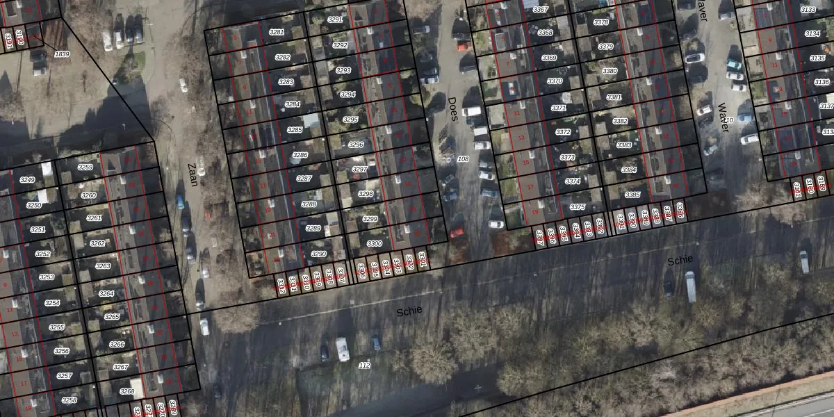 Gebruik de zoekbalk of klik op een perceel voor informatie over de adressen binnen dit perceel.