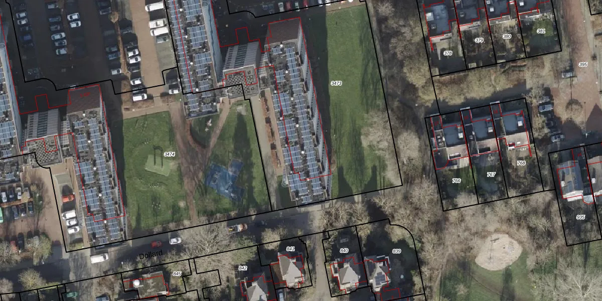 Het perceel waarop Dollard 385 staat heeft een oppervlakte van 3810 m². Dit is een zeer groot perceel. De perceeloppervlakte wordt geregistreerd door het Kadaster. Gedetailleerde informatie over de maten van dit perceel kunt u vinden in het rapport Kadastrale kaart met maatvoering van Dollard 385.