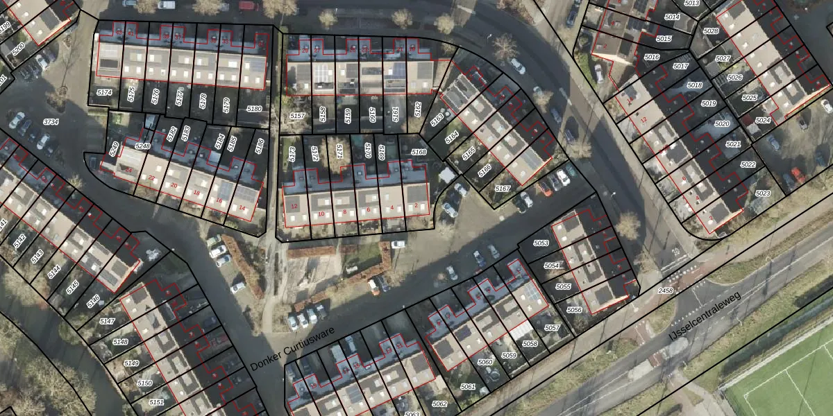 Donker Curtiusware 2 is gelegen op kadastraal perceel ZLE00L5168. Deze kadastrale aanduiding is uniek en wordt gebruikt door het Kadaster om eigendomsrechten en andere zakelijke rechten vast te leggen. Het perceel maakt onderdeel uit van de kadastrale gemeente Zwolle.