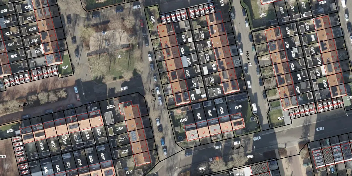 Het perceel waarop Drecht 21 staat heeft een oppervlakte van 154 m². Dit is een middelgroot perceel. De perceeloppervlakte wordt geregistreerd door het Kadaster. Gedetailleerde informatie over de maten van dit perceel kunt u vinden in het rapport Kadastrale kaart met maatvoering van Drecht 21.