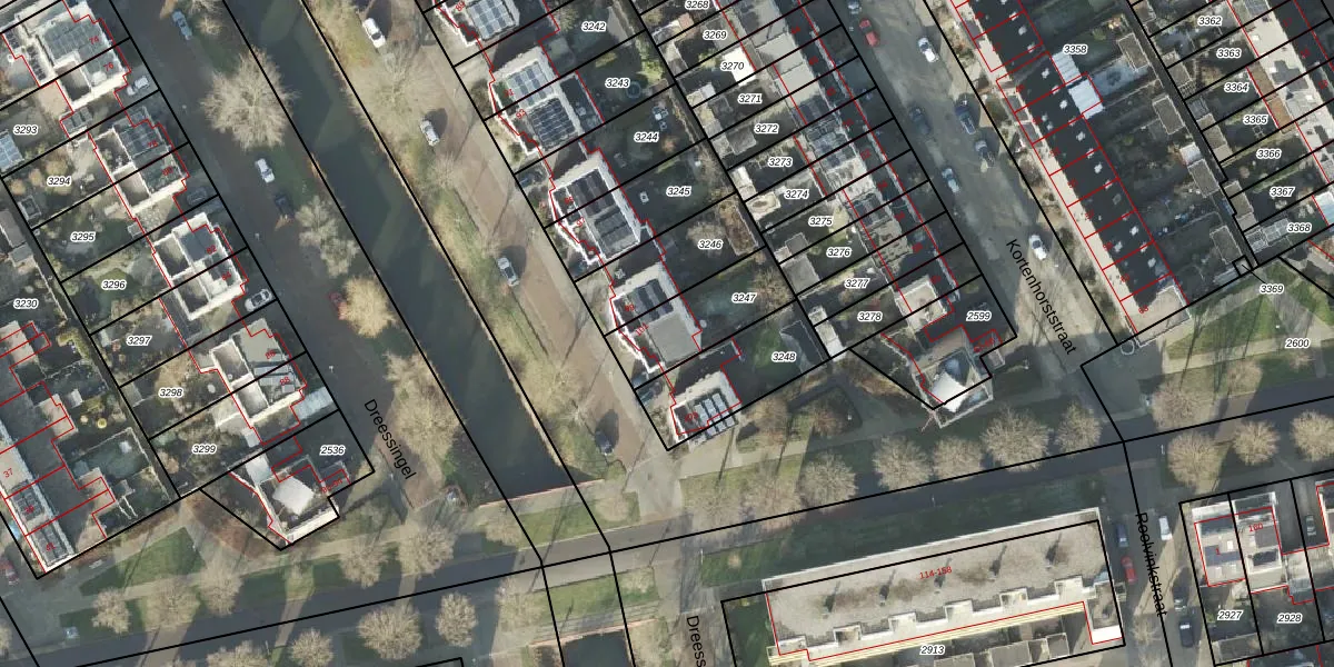 Het perceel waarop Dreessingel 101 staat heeft een oppervlakte van 259 m². Dit is een middelgroot perceel. De perceeloppervlakte wordt geregistreerd door het Kadaster. Gedetailleerde informatie over de maten van dit perceel kunt u vinden in het rapport Kadastrale kaart met maatvoering van Dreessingel 101.