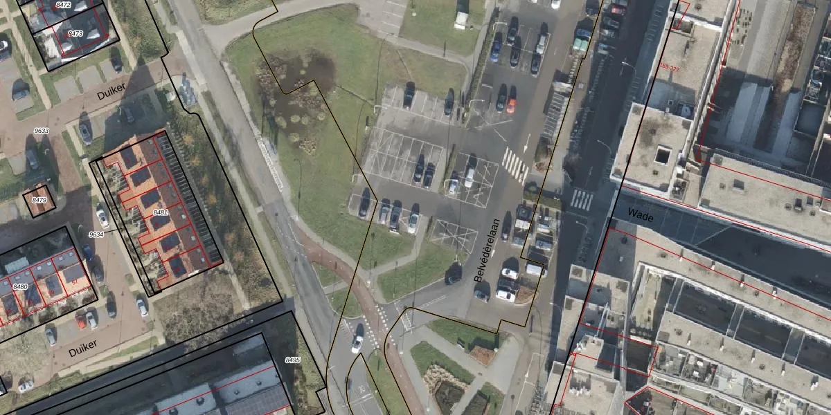 Het perceel waarop Duiker 100 staat heeft een oppervlakte van 1,3 ha. Dit is een zeer groot perceel. De perceeloppervlakte wordt geregistreerd door het Kadaster. Gedetailleerde informatie over de maten van dit perceel kunt u vinden in het rapport Kadastrale kaart met maatvoering van Duiker 100.