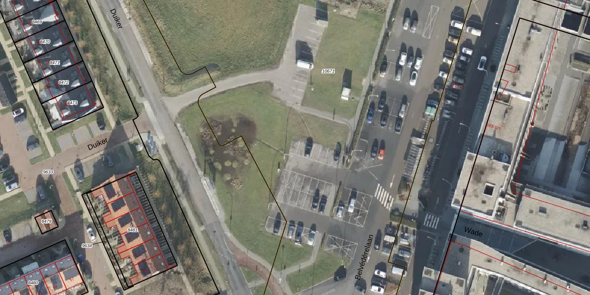 Het perceel waarop Duiker 106-A staat heeft een oppervlakte van 1,3 ha. Dit is een zeer groot perceel. De perceeloppervlakte wordt geregistreerd door het Kadaster. Gedetailleerde informatie over de maten van dit perceel kunt u vinden in het rapport Kadastrale kaart met maatvoering van Duiker 106-A.