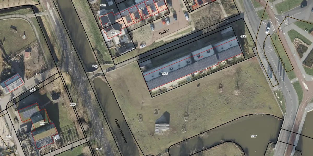 Het perceel waarop Duiker 51 staat heeft een oppervlakte van 1498 m². Dit is een zeer groot perceel. De perceeloppervlakte wordt geregistreerd door het Kadaster. Gedetailleerde informatie over de maten van dit perceel kunt u vinden in het rapport Kadastrale kaart met maatvoering van Duiker 51.