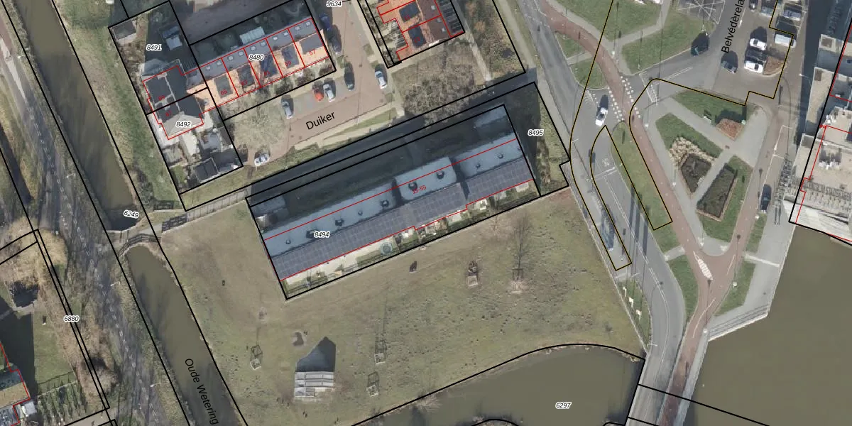 Het perceel waarop Duiker 55 staat heeft een oppervlakte van 1498 m². Dit is een zeer groot perceel. De perceeloppervlakte wordt geregistreerd door het Kadaster. Gedetailleerde informatie over de maten van dit perceel kunt u vinden in het rapport Kadastrale kaart met maatvoering van Duiker 55.