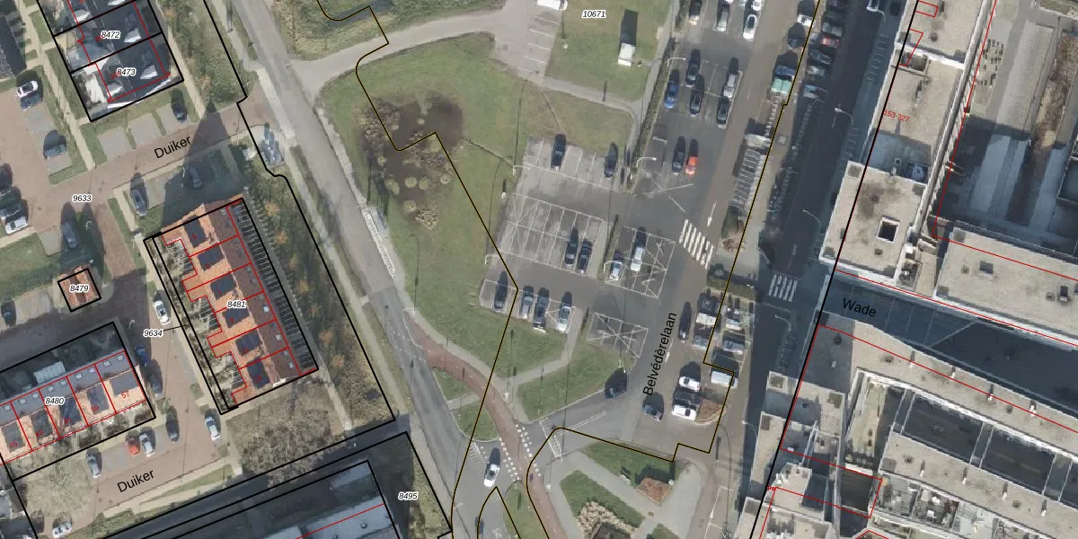 Het perceel waarop Duiker 64 staat heeft een oppervlakte van 1,3 ha. Dit is een zeer groot perceel. De perceeloppervlakte wordt geregistreerd door het Kadaster. Gedetailleerde informatie over de maten van dit perceel kunt u vinden in het rapport Kadastrale kaart met maatvoering van Duiker 64.