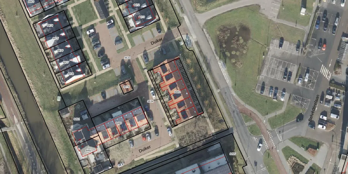 Het perceel waarop Duiker 7 staat heeft een oppervlakte van 633 m². Dit is een groot perceel. De perceeloppervlakte wordt geregistreerd door het Kadaster. Gedetailleerde informatie over de maten van dit perceel kunt u vinden in het rapport Kadastrale kaart met maatvoering van Duiker 7.