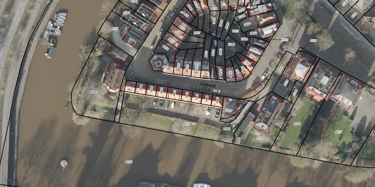 Het perceel waarop Eekwal 17 staat heeft een oppervlakte van 34 m². Dit is een klein perceel. De perceeloppervlakte wordt geregistreerd door het Kadaster. Gedetailleerde informatie over de maten van dit perceel kunt u vinden in het rapport Kadastrale kaart met maatvoering van Eekwal 17.