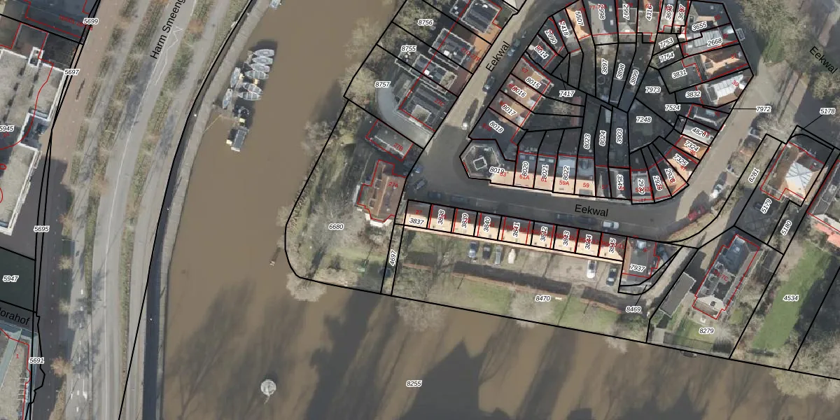Het perceel waarop Eekwal 27 staat heeft een oppervlakte van 35 m². Dit is een klein perceel. De perceeloppervlakte wordt geregistreerd door het Kadaster. Gedetailleerde informatie over de maten van dit perceel kunt u vinden in het rapport Kadastrale kaart met maatvoering van Eekwal 27.