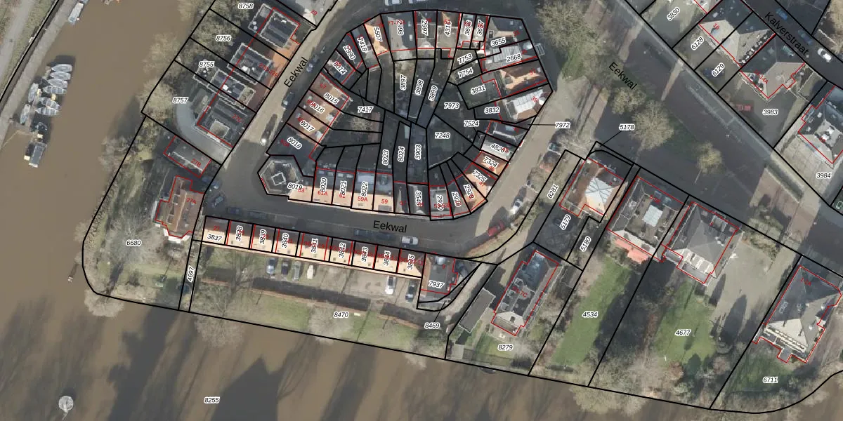 Het perceel waarop Eekwal 55 staat heeft een oppervlakte van 40 m². Dit is een klein perceel. De perceeloppervlakte wordt geregistreerd door het Kadaster. Gedetailleerde informatie over de maten van dit perceel kunt u vinden in het rapport Kadastrale kaart met maatvoering van Eekwal 55.
