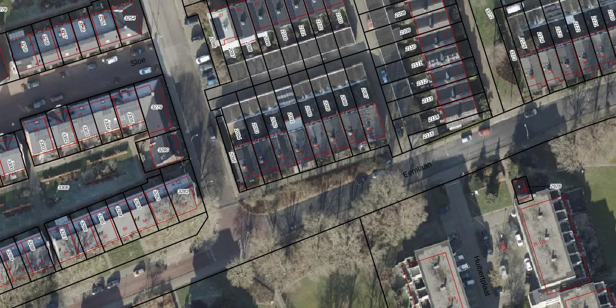 Gebruik de zoekbalk of klik op een perceel voor informatie over de adressen binnen dit perceel.