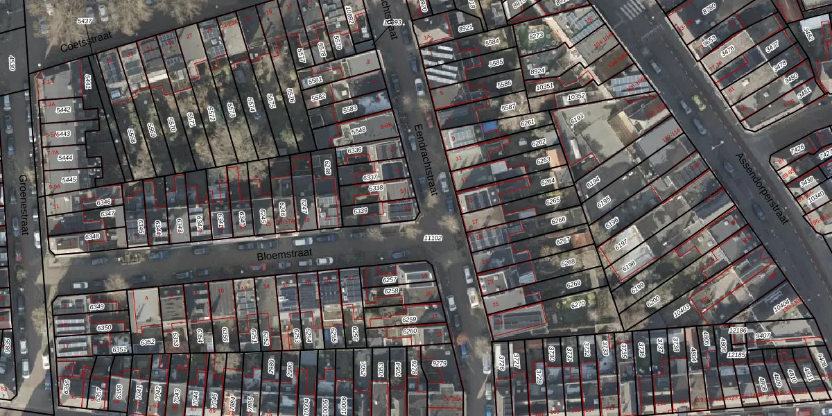 Gebruik de zoekbalk of klik op een perceel voor informatie over de adressen binnen dit perceel.