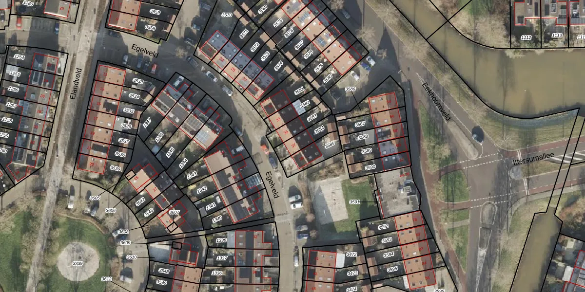 Gebruik de zoekbalk of klik op een perceel voor informatie over de adressen binnen dit perceel.