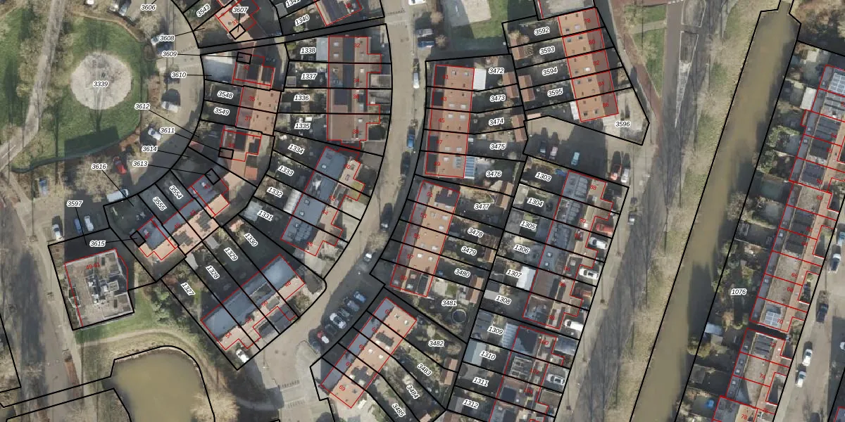 Gebruik de zoekbalk of klik op een perceel voor informatie over de adressen binnen dit perceel.