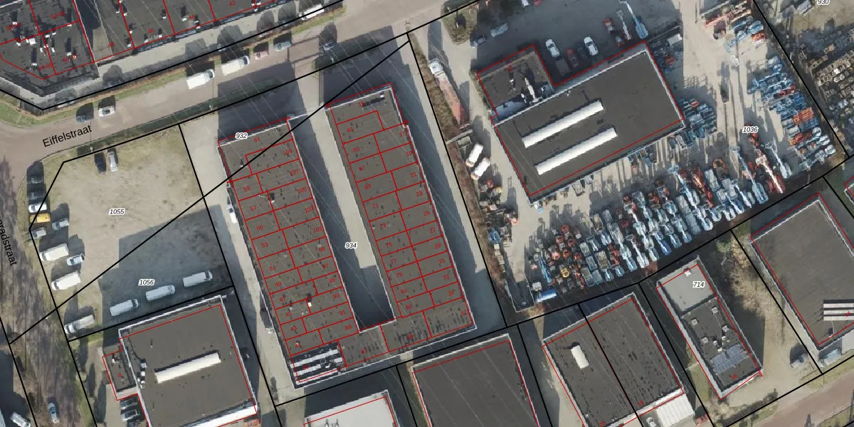 Het perceel waarop Eiffelstraat 25 staat heeft een oppervlakte van 3529 m². Dit is een zeer groot perceel. De perceeloppervlakte wordt geregistreerd door het Kadaster. Gedetailleerde informatie over de maten van dit perceel kunt u vinden in het rapport Kadastrale kaart met maatvoering van Eiffelstraat 25.