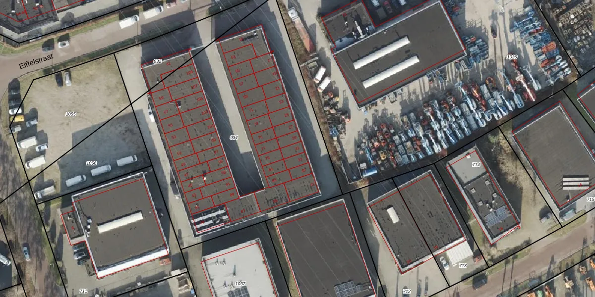 Het perceel waarop Eiffelstraat 31 staat heeft een oppervlakte van 3529 m². Dit is een zeer groot perceel. De perceeloppervlakte wordt geregistreerd door het Kadaster. Gedetailleerde informatie over de maten van dit perceel kunt u vinden in het rapport Kadastrale kaart met maatvoering van Eiffelstraat 31.