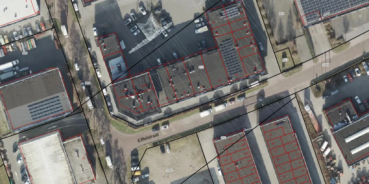 Het perceel waarop Eiffelstraat 46 staat heeft een oppervlakte van 3762 m². Dit is een zeer groot perceel. De perceeloppervlakte wordt geregistreerd door het Kadaster. Gedetailleerde informatie over de maten van dit perceel kunt u vinden in het rapport Kadastrale kaart met maatvoering van Eiffelstraat 46.