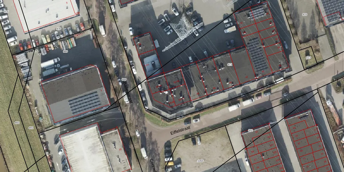 Het perceel waarop Eiffelstraat 62 staat heeft een oppervlakte van 3762 m². Dit is een zeer groot perceel. De perceeloppervlakte wordt geregistreerd door het Kadaster. Gedetailleerde informatie over de maten van dit perceel kunt u vinden in het rapport Kadastrale kaart met maatvoering van Eiffelstraat 62.