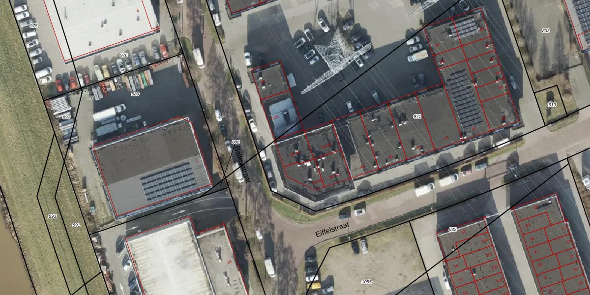 Het perceel waarop Eiffelstraat 64 staat heeft een oppervlakte van 3762 m². Dit is een zeer groot perceel. De perceeloppervlakte wordt geregistreerd door het Kadaster. Gedetailleerde informatie over de maten van dit perceel kunt u vinden in het rapport Kadastrale kaart met maatvoering van Eiffelstraat 64.