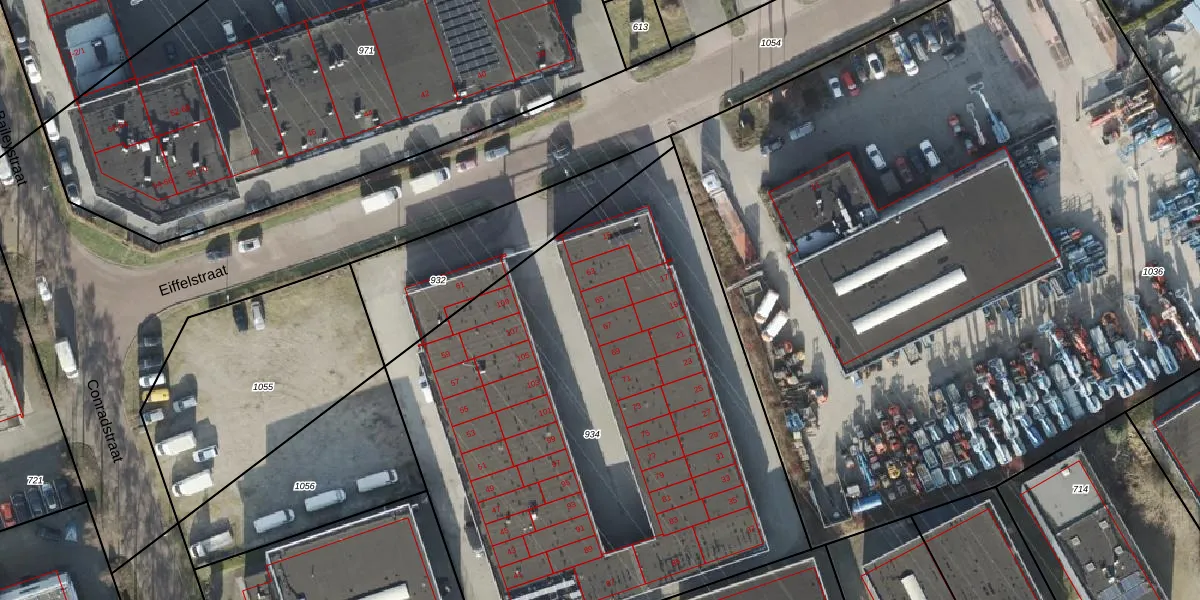Het perceel waarop Eiffelstraat 65 staat heeft een oppervlakte van 3529 m². Dit is een zeer groot perceel. De perceeloppervlakte wordt geregistreerd door het Kadaster. Gedetailleerde informatie over de maten van dit perceel kunt u vinden in het rapport Kadastrale kaart met maatvoering van Eiffelstraat 65.
