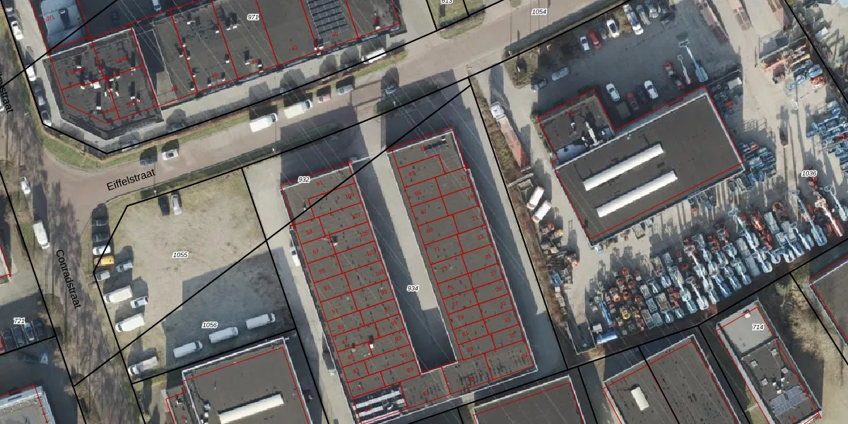 Het perceel waarop Eiffelstraat 67 staat heeft een oppervlakte van 3529 m². Dit is een zeer groot perceel. De perceeloppervlakte wordt geregistreerd door het Kadaster. Gedetailleerde informatie over de maten van dit perceel kunt u vinden in het rapport Kadastrale kaart met maatvoering van Eiffelstraat 67.
