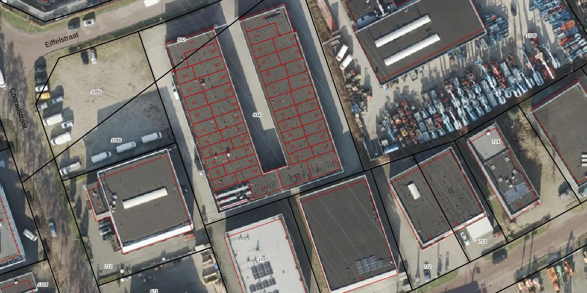 Het perceel waarop Eiffelstraat 81 staat heeft een oppervlakte van 3529 m². Dit is een zeer groot perceel. De perceeloppervlakte wordt geregistreerd door het Kadaster. Gedetailleerde informatie over de maten van dit perceel kunt u vinden in het rapport Kadastrale kaart met maatvoering van Eiffelstraat 81.