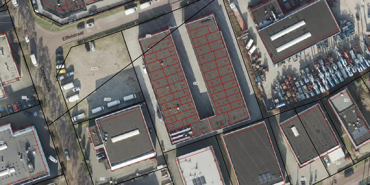 Het perceel waarop Eiffelstraat 97 staat heeft een oppervlakte van 3529 m². Dit is een zeer groot perceel. De perceeloppervlakte wordt geregistreerd door het Kadaster. Gedetailleerde informatie over de maten van dit perceel kunt u vinden in het rapport Kadastrale kaart met maatvoering van Eiffelstraat 97.