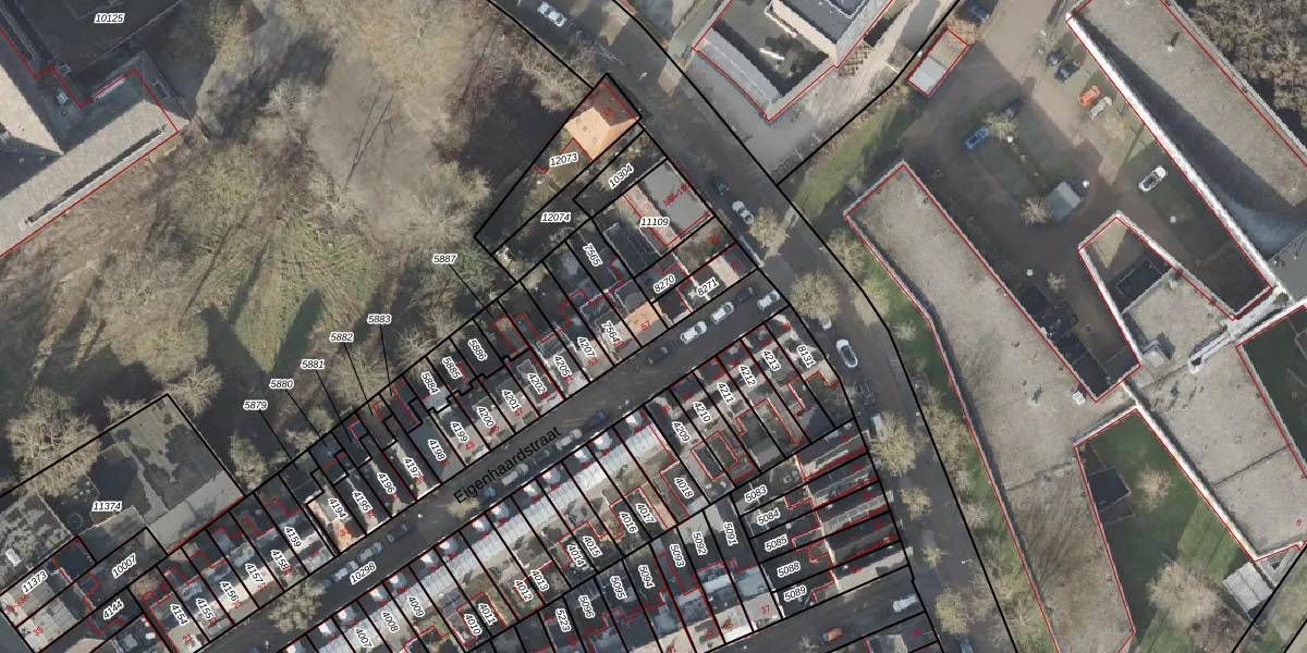 Het perceel waarop Eigenhaardstraat 57 staat heeft een oppervlakte van 106 m². Dit is een middelgroot perceel. De perceeloppervlakte wordt geregistreerd door het Kadaster. Gedetailleerde informatie over de maten van dit perceel kunt u vinden in het rapport Kadastrale kaart met maatvoering van Eigenhaardstraat 57.