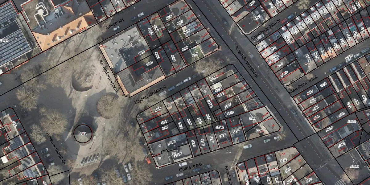 Gebruik de zoekbalk of klik op een perceel voor informatie over de adressen binnen dit perceel.
