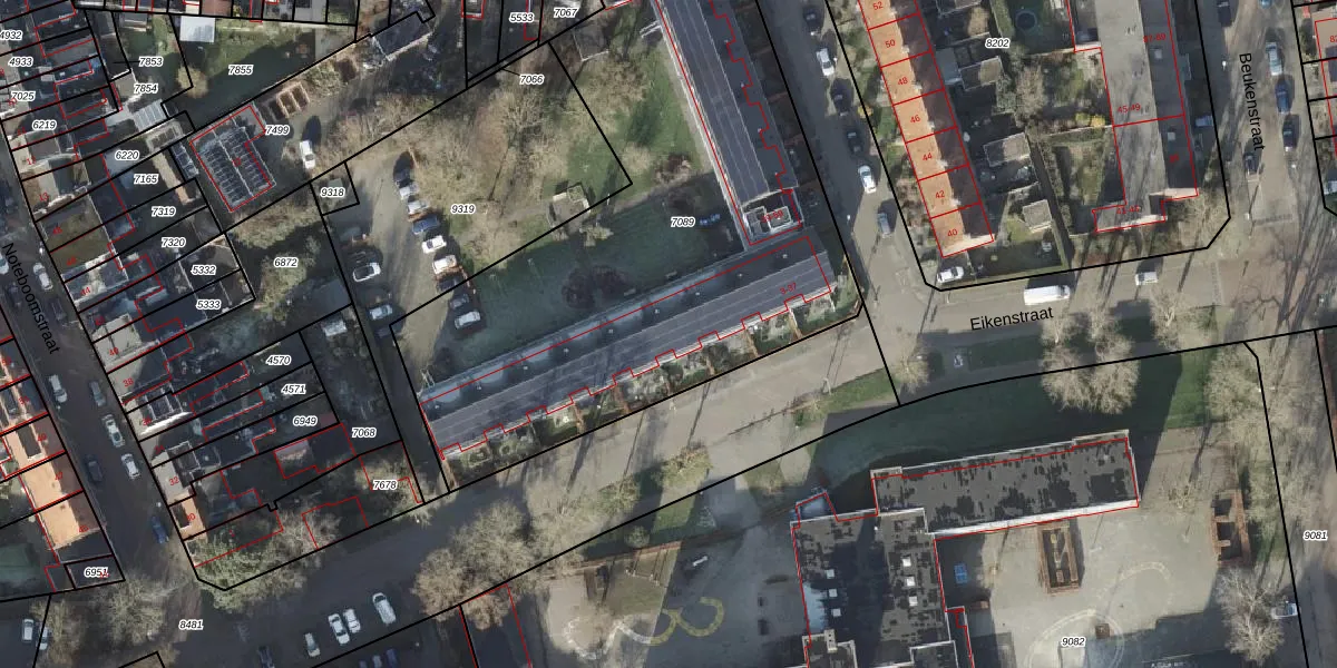 Het perceel waarop Eikenstraat 13 staat heeft een oppervlakte van 2924 m². Dit is een zeer groot perceel. De perceeloppervlakte wordt geregistreerd door het Kadaster. Gedetailleerde informatie over de maten van dit perceel kunt u vinden in het rapport Kadastrale kaart met maatvoering van Eikenstraat 13.