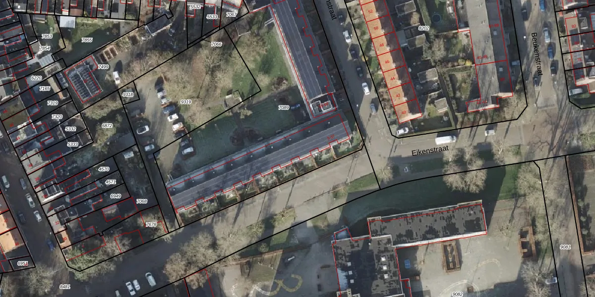 Het perceel waarop Eikenstraat 15 staat heeft een oppervlakte van 2924 m². Dit is een zeer groot perceel. De perceeloppervlakte wordt geregistreerd door het Kadaster. Gedetailleerde informatie over de maten van dit perceel kunt u vinden in het rapport Kadastrale kaart met maatvoering van Eikenstraat 15.