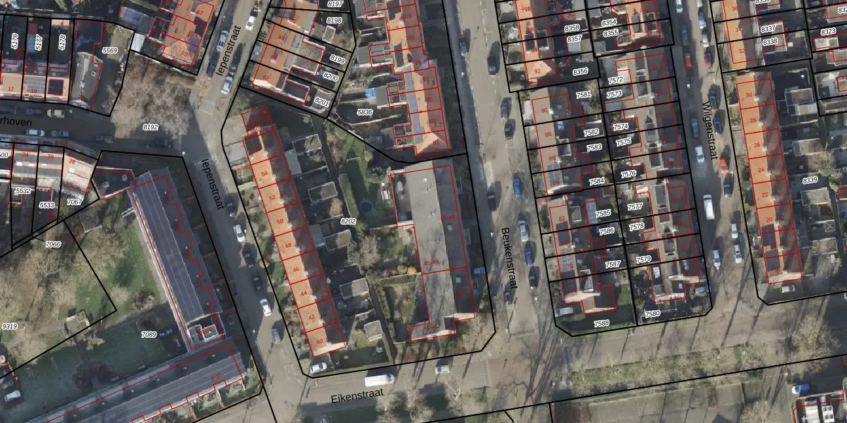 Het perceel waarop Eikenstraat 49 staat heeft een oppervlakte van 2939 m². Dit is een zeer groot perceel. De perceeloppervlakte wordt geregistreerd door het Kadaster. Gedetailleerde informatie over de maten van dit perceel kunt u vinden in het rapport Kadastrale kaart met maatvoering van Eikenstraat 49.