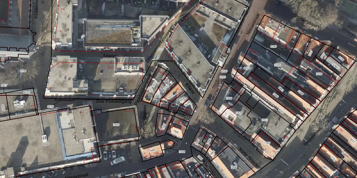 Het perceel waarop Eiland 44 staat heeft een oppervlakte van 77 m². Dit is een klein perceel. De perceeloppervlakte wordt geregistreerd door het Kadaster. Gedetailleerde informatie over de maten van dit perceel kunt u vinden in het rapport Kadastrale kaart met maatvoering van Eiland 44.