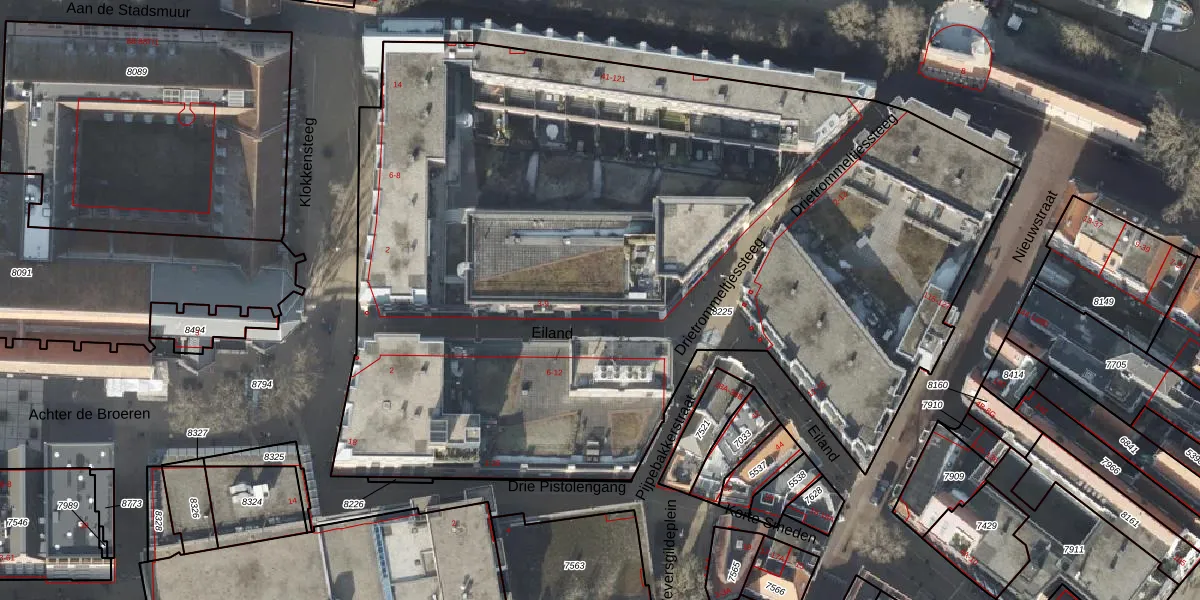 Het perceel waarop Eiland 7 staat heeft een oppervlakte van 6146 m². Dit is een zeer groot perceel. De perceeloppervlakte wordt geregistreerd door het Kadaster. Gedetailleerde informatie over de maten van dit perceel kunt u vinden in het rapport Kadastrale kaart met maatvoering van Eiland 7.