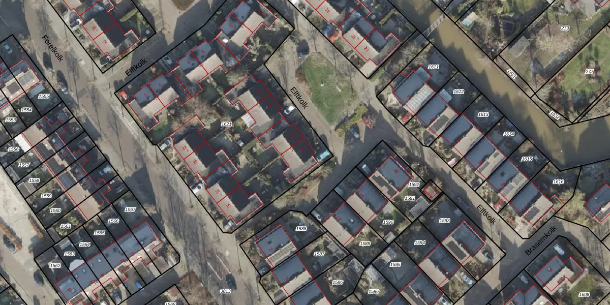 Het perceel waarop Elftkolk 20 staat heeft een oppervlakte van 2958 m². Dit is een zeer groot perceel. De perceeloppervlakte wordt geregistreerd door het Kadaster. Gedetailleerde informatie over de maten van dit perceel kunt u vinden in het rapport Kadastrale kaart met maatvoering van Elftkolk 20.