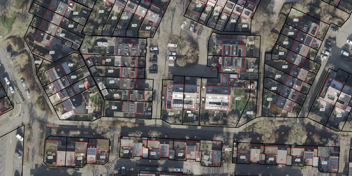 Gebruik de zoekbalk of klik op een perceel voor informatie over de adressen binnen dit perceel.