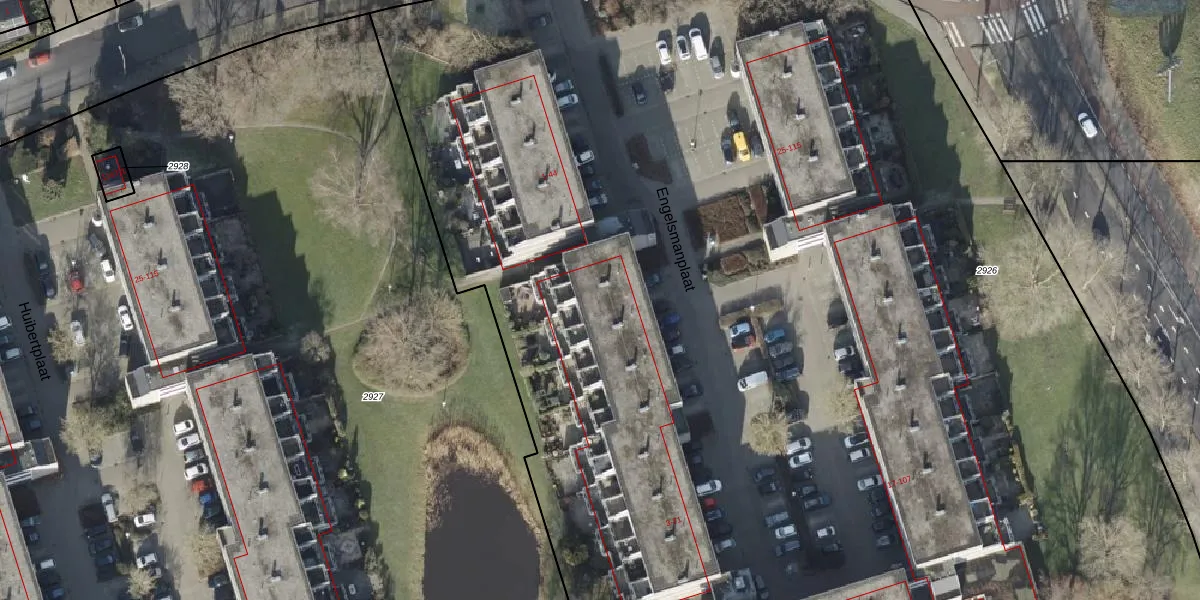Het perceel waarop Engelsmanplaat 5 staat heeft een oppervlakte van 1,3 ha. Dit is een zeer groot perceel. De perceeloppervlakte wordt geregistreerd door het Kadaster. Gedetailleerde informatie over de maten van dit perceel kunt u vinden in het rapport Kadastrale kaart met maatvoering van Engelsmanplaat 5.