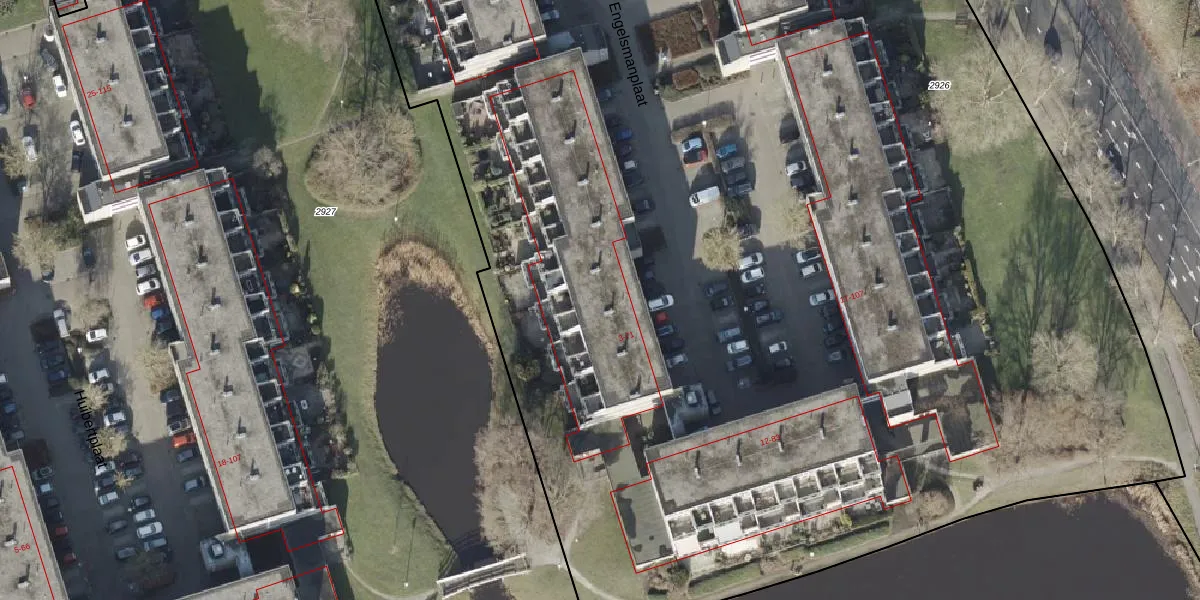Het perceel waarop Engelsmanplaat 63 staat heeft een oppervlakte van 1,3 ha. Dit is een zeer groot perceel. De perceeloppervlakte wordt geregistreerd door het Kadaster. Gedetailleerde informatie over de maten van dit perceel kunt u vinden in het rapport Kadastrale kaart met maatvoering van Engelsmanplaat 63.