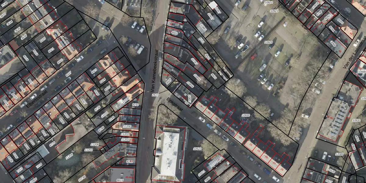 Het perceel waarop Enkstraat 3-D staat heeft een oppervlakte van 93 m². Dit is een klein perceel. De perceeloppervlakte wordt geregistreerd door het Kadaster. Gedetailleerde informatie over de maten van dit perceel kunt u vinden in het rapport Kadastrale kaart met maatvoering van Enkstraat 3-D.