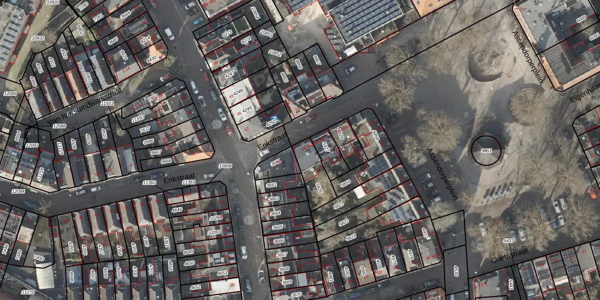 Het perceel waarop Enkstraat 46 staat heeft een oppervlakte van 181 m². Dit is een middelgroot perceel. De perceeloppervlakte wordt geregistreerd door het Kadaster. Gedetailleerde informatie over de maten van dit perceel kunt u vinden in het rapport Kadastrale kaart met maatvoering van Enkstraat 46.
