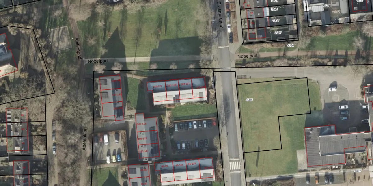 Het perceel waarop Erasmuslaan 131 staat heeft een oppervlakte van 8405 m². Dit is een zeer groot perceel. De perceeloppervlakte wordt geregistreerd door het Kadaster. Gedetailleerde informatie over de maten van dit perceel kunt u vinden in het rapport Kadastrale kaart met maatvoering van Erasmuslaan 131.