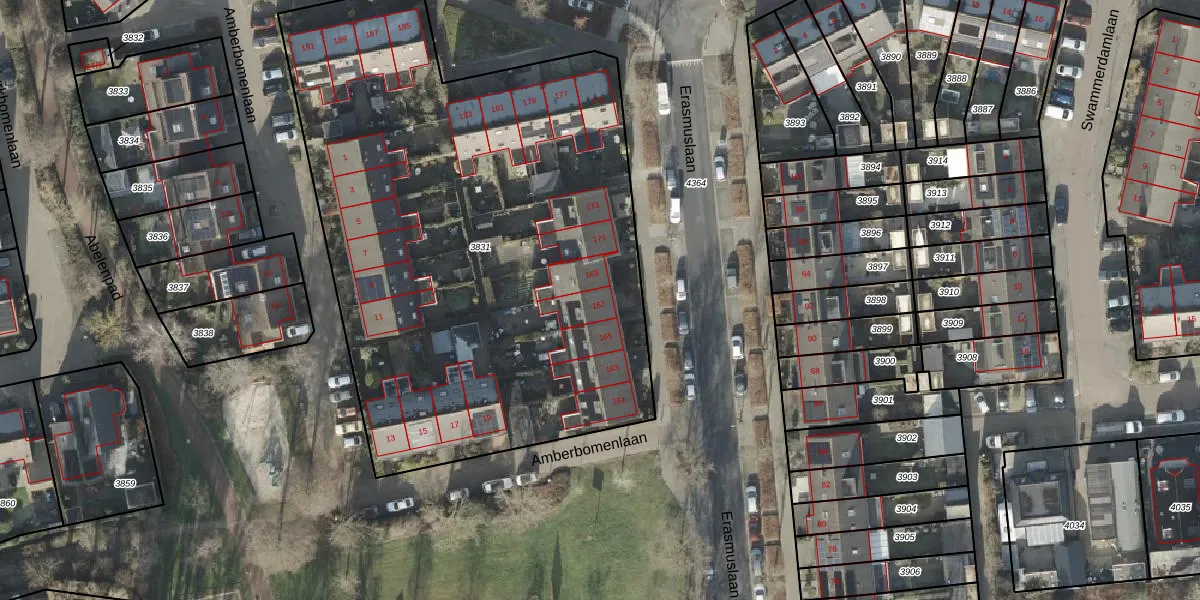 Het perceel waarop Erasmuslaan 167 staat heeft een oppervlakte van 3565 m². Dit is een zeer groot perceel. De perceeloppervlakte wordt geregistreerd door het Kadaster. Gedetailleerde informatie over de maten van dit perceel kunt u vinden in het rapport Kadastrale kaart met maatvoering van Erasmuslaan 167.