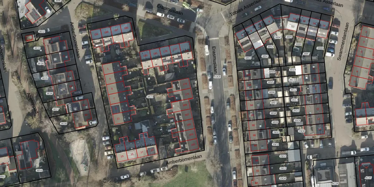 Het perceel waarop Erasmuslaan 171 staat heeft een oppervlakte van 3565 m². Dit is een zeer groot perceel. De perceeloppervlakte wordt geregistreerd door het Kadaster. Gedetailleerde informatie over de maten van dit perceel kunt u vinden in het rapport Kadastrale kaart met maatvoering van Erasmuslaan 171.